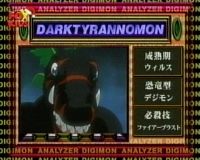 That's Dark Tyrannomon. He was actually a nice guy once, until he was taken over by an evil computer virus and his personality did a 180. - Palmon
