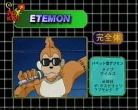 There's nothing entertaining about Etemon he has the power to control anything electronic through is Dark network - Tentomon