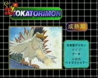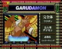 Garudamon is the Ultimate form of Birdramon. She commands the sky and protects the Earth. Her attack is a flaming bird called Wing Blade. - Tentomon