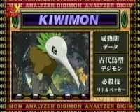Oh, no! it's Kiwimon, a ancient digimon that was said to be extinct. Although he's a bird type digimon, his wings have degenerated, so he can't fly. - Tentomon
