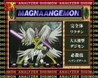 I am MagnaAngemon. I have eight shining wings and a beam shield. I wield the mighty sword Excaliber, and my devastating attack is the Gate Of Destiny. -Magnaangemon