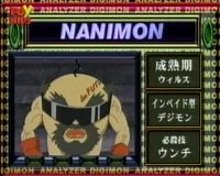 Nanimon is an invader digimon. I'd tell him what I really think of his sunglasses, but his Power Punch would flatten me - Demidevimon