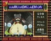 Monzaemon was sweet and cute, but Warumonzaemon is about as cuddly as a porcupine His Bear Claw will give you heartburn, along with his Heartbreak Attack -Biyomon