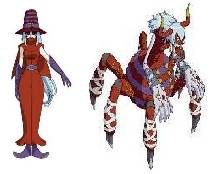 She has 2 forms and uses her hair to make control spires to Digimon. She was made by Oikawa/Myo and is deleted by MaloMyo