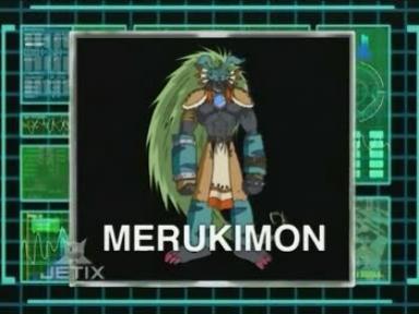 We've identified it. Merukimon, Mega Level. He can strike in the blink of an eye with his Thousand Fists Attack or devastating Super Charge. ~ Miki