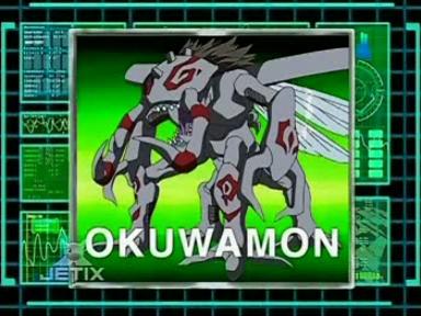 Okuwamon Ultimate level. It can use it's mighty pincers to cut through almost anything, or it can bring down it's opponents with it's Double Scissor Claw attack. ~ Miki?