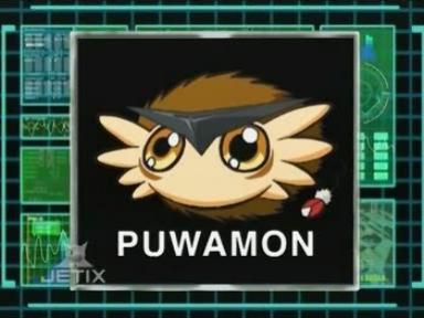 That's Puwamon. He's an In-Training level Digimon that's covered in soft feathers. It's very curious and easily bonds with people. ~ Thomas