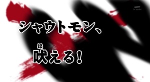 Dub Name: He Is Shoutmon, Hear Him Roar Japanese Name: Shoutmon, Roar Review: Shoutmon is running with Taiki up a hill with Ballistamon and the others trailing behind. Shoutmon stops at a cliff with Taiki freaking out until he sees the awesome view of a city. This is the Green Zone. Jijimon appears on his staff just ahead of the cliff and Shoutmon gets whacked for not address him right. Jijimon talks to them about the Bagura Army. We then see the city under attack from the Bagura Army. Shoutmon is annoyed and jumps with Taiki off the cliff, Ballistamon following leaving Akari, Zenj, Pickmons and Jijimon behind. Akari seemingly whining. Shoutmon uses his Rowdy Rocker and with Ballistamon's help is knocked into the air to attack. No Digimon in sight so they do it again, this time Shoutmon is attacked from behind by a Pteramon. Taiki Digi Xros' the Pickmon into an elastic catapult...Shoutmon goes into it and Ballistamon launches him into the Pteramon defeating it. A Coelamon is then seen swimming in the ground as the others finally to the edge of the city. Akari checks her phone but there is no signal. She is upset about her parents when a pink bunny turns up and introduces itself as Cutemon. Again the Coelamon is seen swimming in the ground and analysers what's going on. It appears to go to attack but is stomped by an orange wolf-type Digimon named Dorurumon. Cutemon seems to know him and vice-versa. Cutemon then goes with Dorurumon and they leave. Seems that Zenjirou slept though it all as Taiki and co turn up. Akari then gets annoyed at Taiki and for some reason Shoutmon gets a weird thought. Cut to Kihira with Greymon and MailBirdramon. He Digi Xros' them into a new shadowed Digimon and attacks some unseen Digimon. 2 Crystal shaped lights go out and we see that MadLeomon is alive and ticked off. MetalGreymon and MailBirdramon split from the dust we see Nene who mentions a few words to Kihira. Back to the city as nightfalls we see the Dondokomon with Sunflowmon and Lilymon dancing. Taiki is eating until Lilymon blows him a kiss. Shoutmon comes to Taiki who again is freaking out over a few thoughts. Shoutmon goes over the top a little. Taiki has to go pee and has Shoutmon drag on his leg all the way there and while he pees XD The little guy seems upset. Akari has also followed and Taiki freaks out. Shoutmon again begs to Taiki who says something that upsets Shoutmon who ends up punching a rock and then runs off crying. Akari calls after him as Taiki has upset in his voice. Lots of the Troopmon leave a building followed by Minatorumon and a caged Digimon. MadLeomon follows on a Pteramon as dawn breaks. Shoutmon is shouting into is microphone with Ballistamon, Starmon and Pickmons behind him. The 3 kids leave into the forest with the Digimon staying behind. They then see the Bagura army in the distance the way the kids are heading. The kids find themselves surrounded by the 'gunmon' and MadLeomon finds them. Taiki throws dirt into MadLeomon's eyes and they run. MadLeomon orders the release of Orochimon (who was in the cage). The kids try to hide behind a tree but one of the heads finds them so they run right into a dead end. Shoutmon arrives and is taking on a head on his own as MadLeomon thinks he's won. Taiki and Shoutmon start to make up as the Starmon and Pickmon haul the kids out of danger. Ballistamon jumps in and attacks the head first with Shoutmmon following up. MadLeomon then absorbs the Orochimon to become yet another form MadLeomon (Orochi Mode). He attacks them with 2 snake heads but Ballistamon holds them off as Shoutmon starts to jump up the body. Shoutmon goes to attack but MadLeomon attacks him with more heads. Shoutmon is breaking up into data and Ballistamon laid flat out. Taiki seems to realise how much being Digimon King means to Shoutmon as MadLeomon goes to make the killer blow. Taiki Digi Xros the two Digimon and instead of the same monster they made last time a new monster is seen on Taiki's screen. From the smoke the Digimon is seen and is called ShoutmonX2. It grabs the tail about to attack them *that sound so wrong* and flips MadLeomon. Shoutmon X2 has more speed and is dodging the heads. ShoutmonX2 looks like it's going to hit him with a punch but ends up not. The elastic Pickmon and Shoutmon pull him back and instead he blasts MadLeomon who explodes and this time data is seen as the Digimon UnXros. MadLeomon is alive and he retreats with the 'gunmon'. Nene has been watching Taiki as Shoutmon hugs him. End of Epi. |