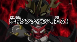 Cutemon runs to Dorulumon as Shoutmon states that Dorulumon is someone they can definitely depend on. The group praise him as the sun rises with the group watching the hill it's coming over, however a figure is now standing there. Dorulumon seems to know it (Tactimon) and a blast wave is sent at the entire group knocking them back. Dorulumon braces it and only goes back a few paces. Shoutmon seems to know him as well as Dorulumon says that this is one of the three head officers of the Bagura Empire - Tactimon. Tactimon tells Taiki it was an impressive escape and then asks Dorulumon if he helped him. Taiki wants to know how Tactimon knows Dorulumon.