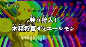 Japanese Name: The Laughing hunter! Wood Spirit General Zamielmon