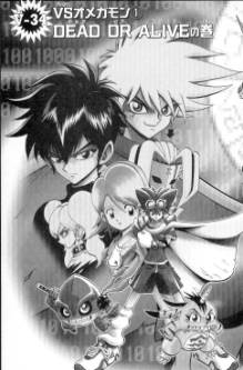 Omegamon and Hideto float in front of Taichi and Zero, along with Gabo and Igamon. Omegamon and Zero begin in fight, punch for punch, evenly matched for a while. Zero hides behind some rocks. Omegamon extends his Grey Sword, angrily, and begins to chop rocks in half, until he finds Zero, who is shocked to see Omegamon found him so quickly. Omegamon punches Zero, who spits up blood. They battle some more, as Hideto yells at Zero. Zero graps Omegamon's cape and throws him into the ground. Omegamon flies back up, more angry. Gabo is worried, as everyone talks a bit. Hideto commands Omegamon to use his Garuru Cannon. He shoots an enormous blast. Taichi gives Zero instructions, but is it too late? A huge explosion causes boulders to fly over. Omegamon stands, as a boulder flies close to him. It says something, and then Zero comes out from behind, and punches Omegamon in the face!